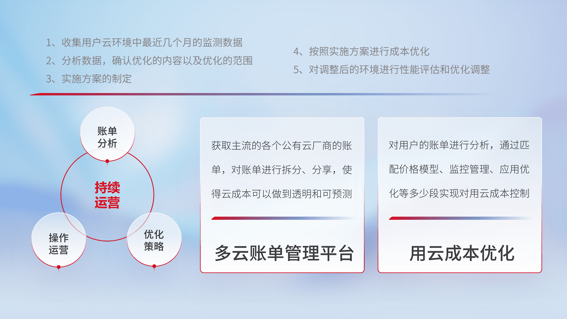 监控业务系统资源开销,,对资源的消耗精确计量,,实现费用的透明化管理,,,不断提升资源使用率,,调整资源购买方式,,降低资源费用成本,,,用云成本可预测、、、用云费用可优化,,,云资源配额有据可依。。