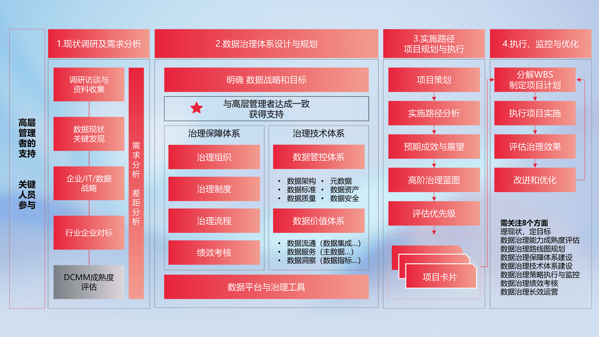 制定并执行统一的数据标准,,,规范数据定义和格式,,消除冗余和不一致性,,实现跨部门和跨系统的数据一致性,,,,为企业提供标准化的数据基础。。。